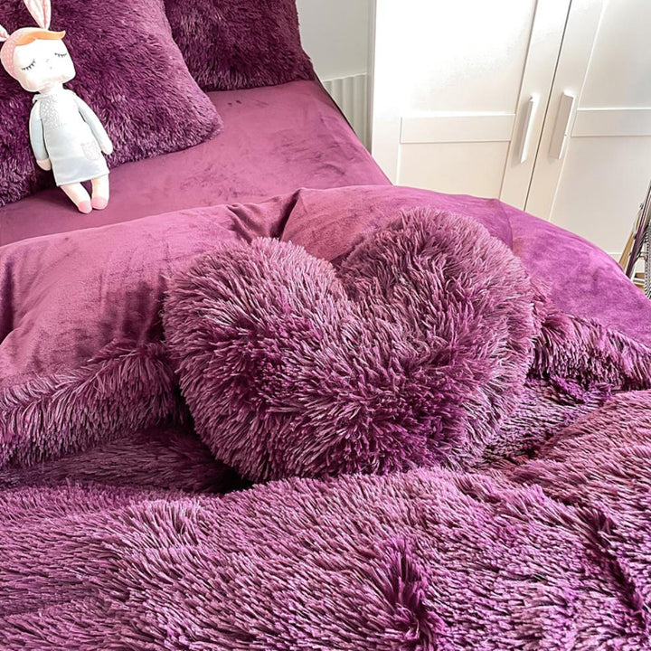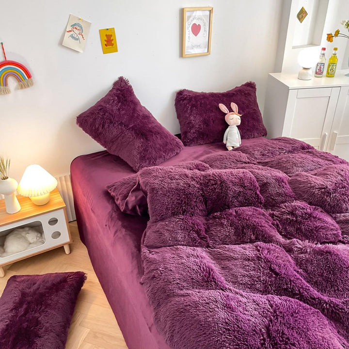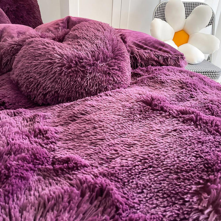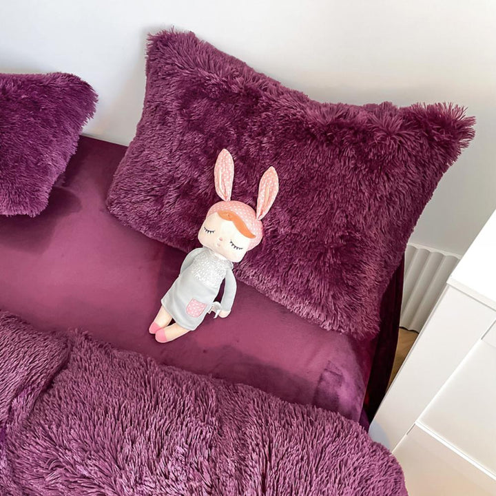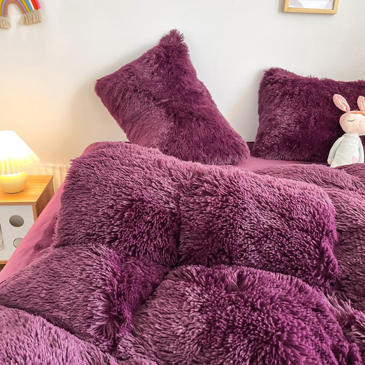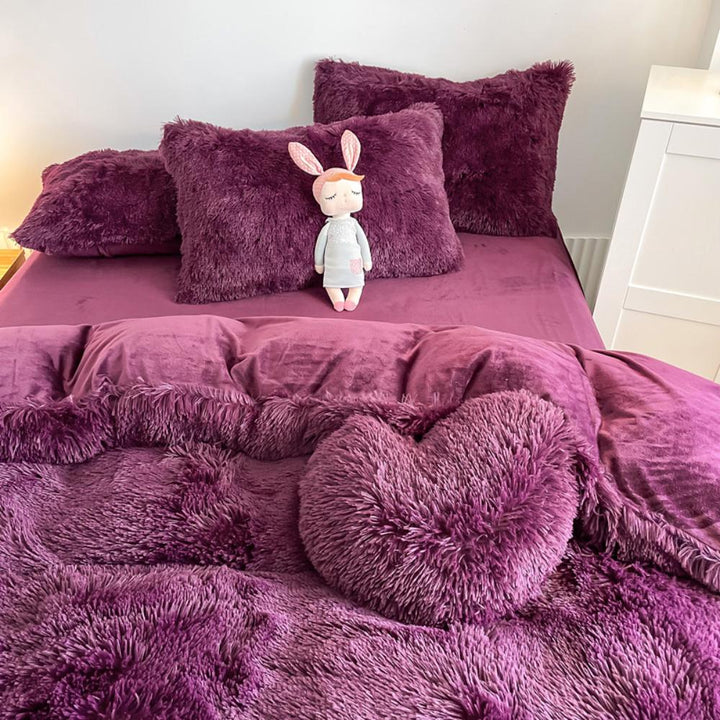 Soft Violet Faux Fur Quilt Cover with Pillowcases – Bold, Luxurious Bedding for All Ages